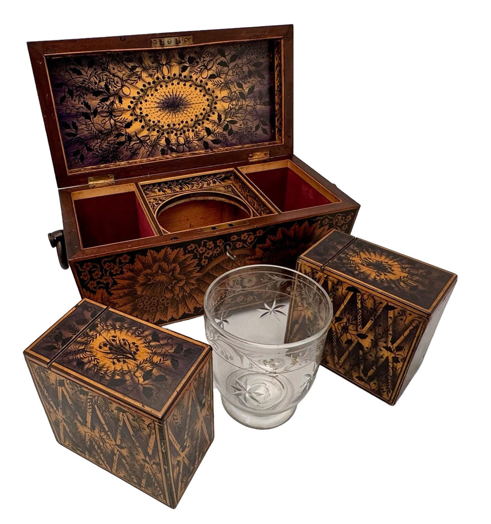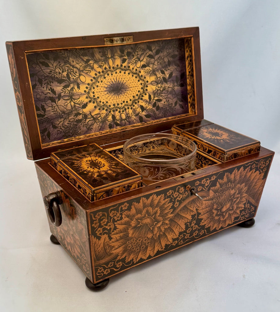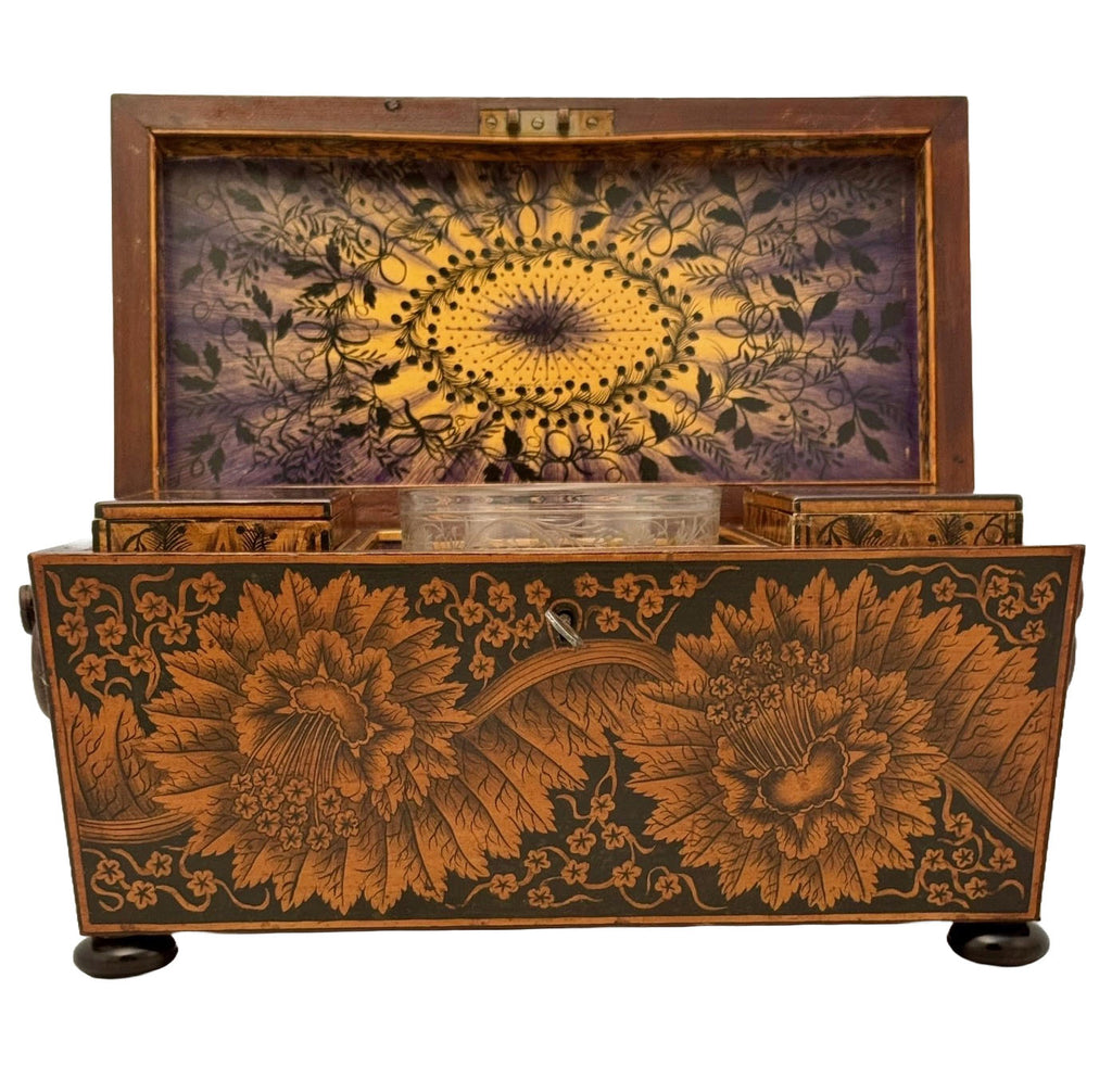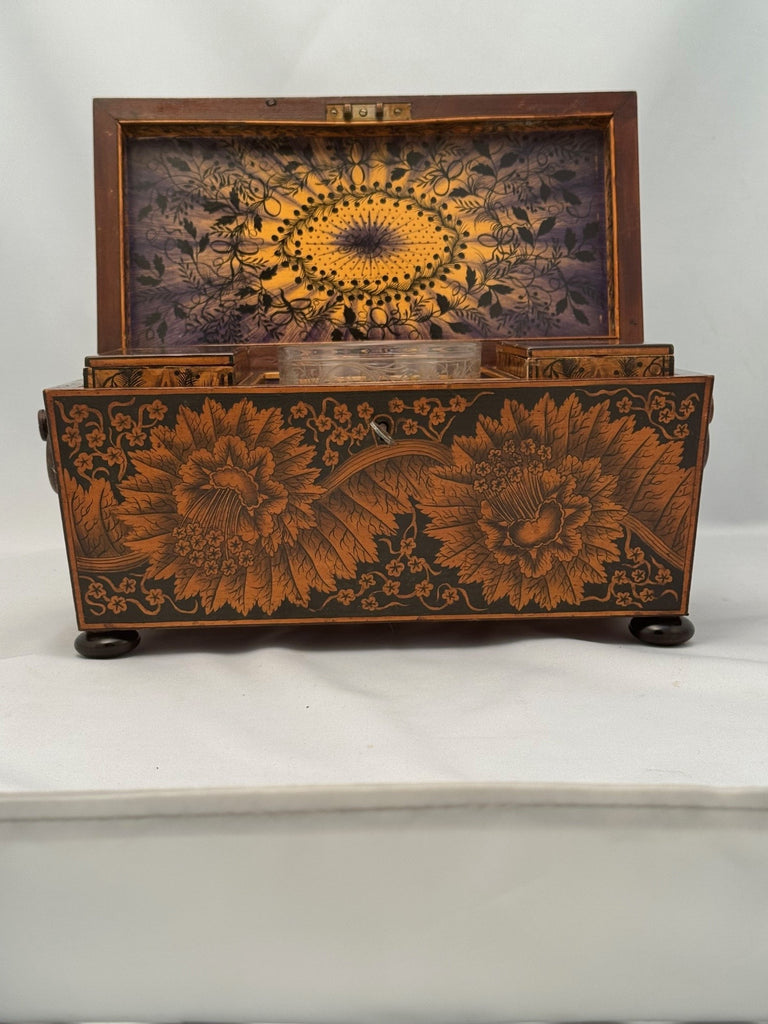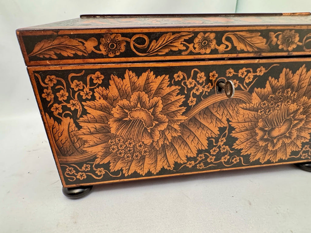 Early Victorian Penwork Tea Caddy